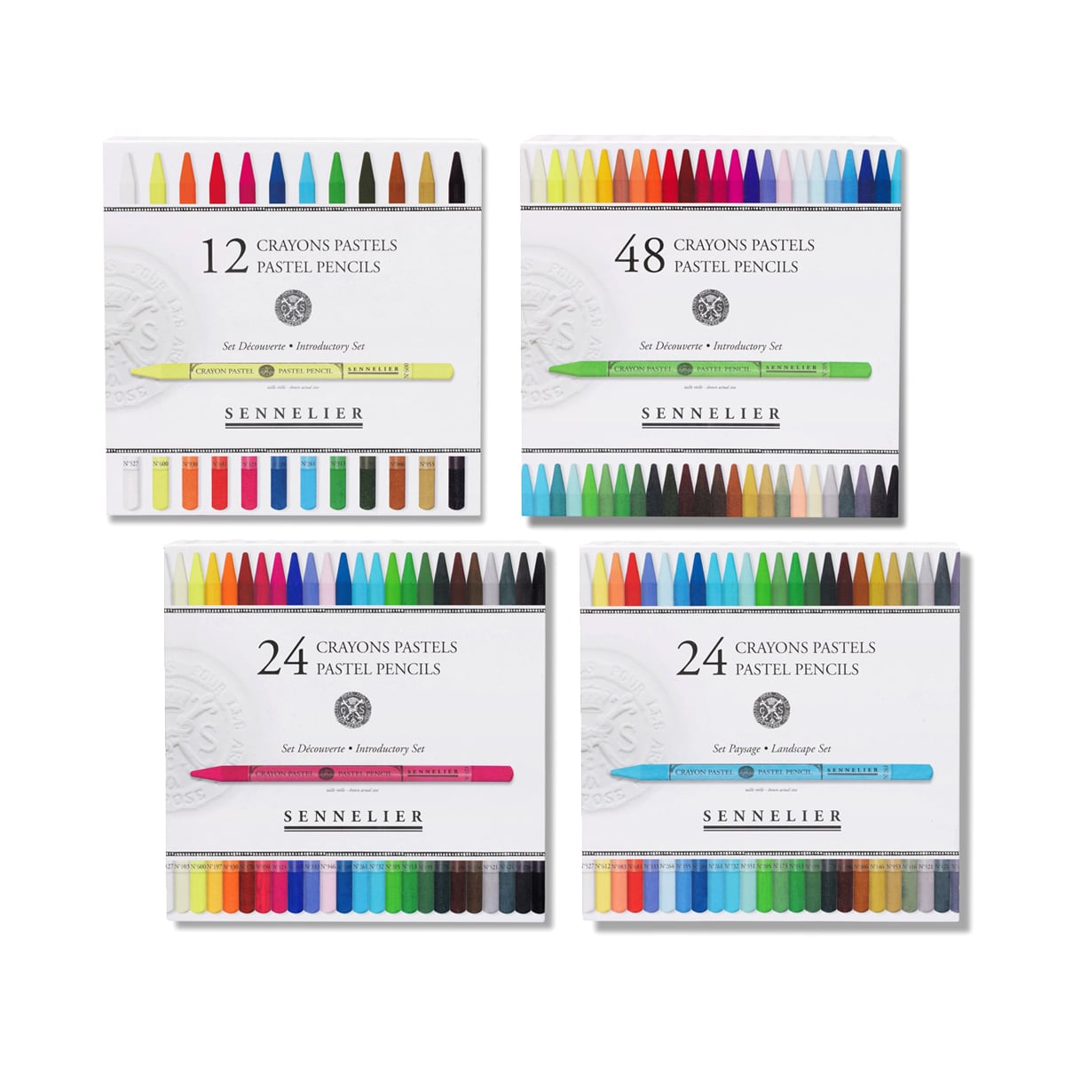 Available in Introductory sets of 12, 24 and 48 pencils containing a broad range of colours suitable for any subject, and a specialised Landscape-themed set of 24 pencils, these beautiful pastels are a perfect gift for any artist.